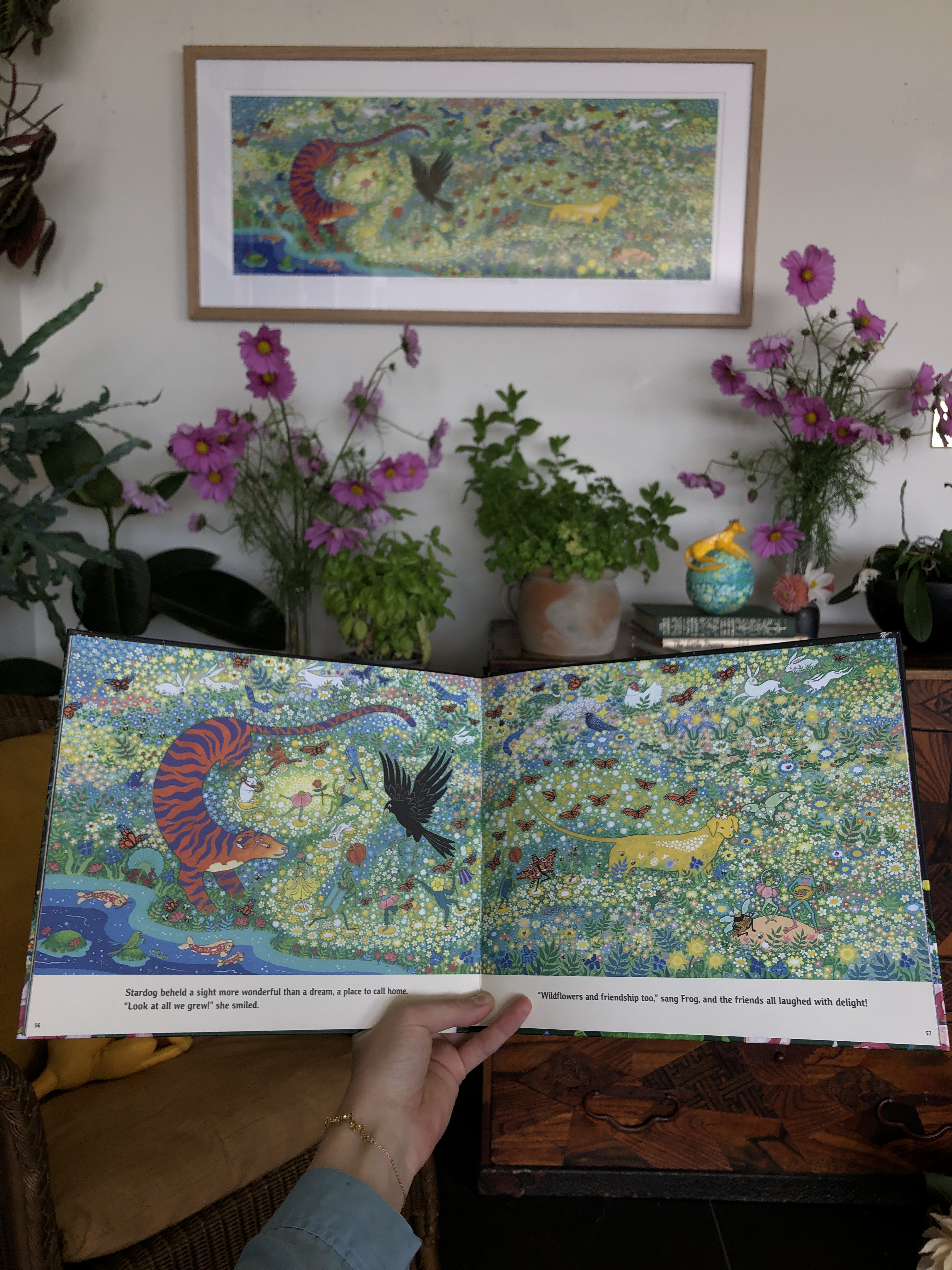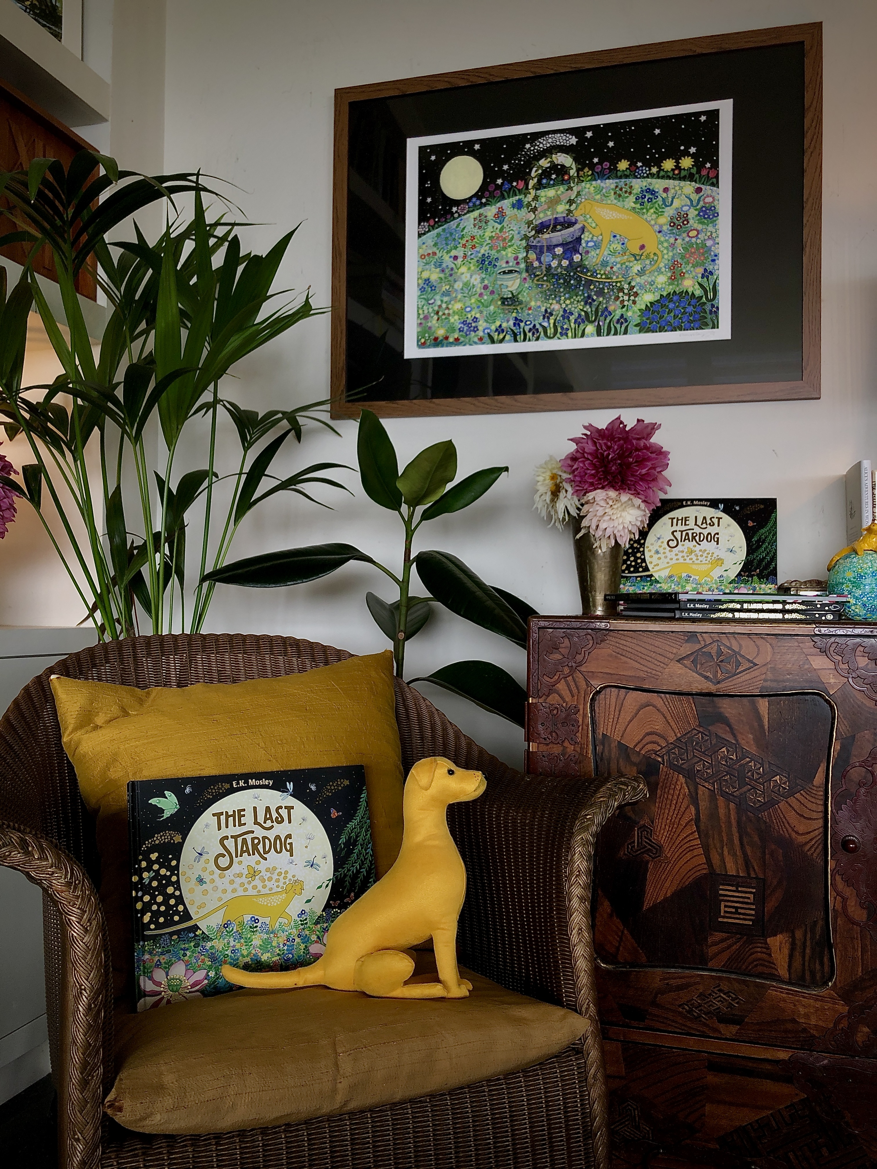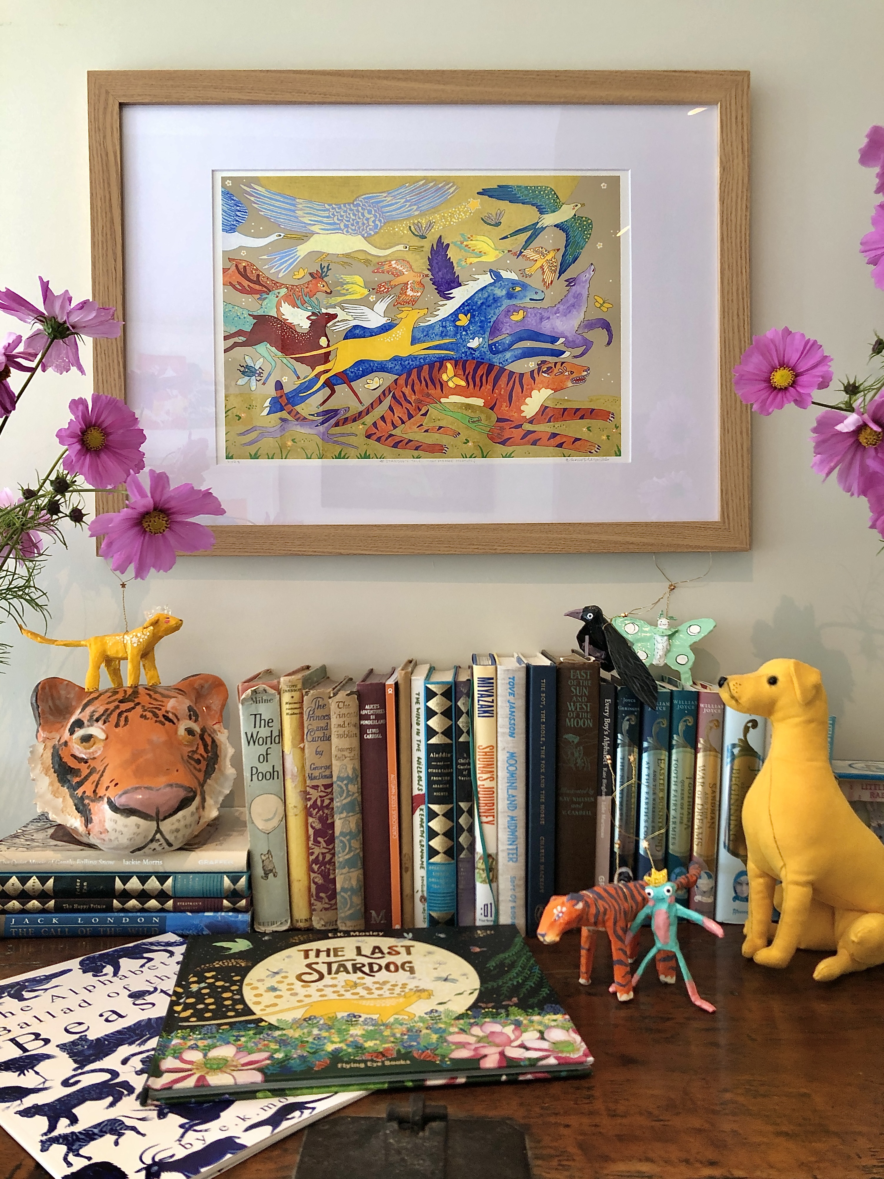 In this world I call her Stardog. She is magical, as all dogs are, and befriends other colourful creatures who wander through this fantasia land.