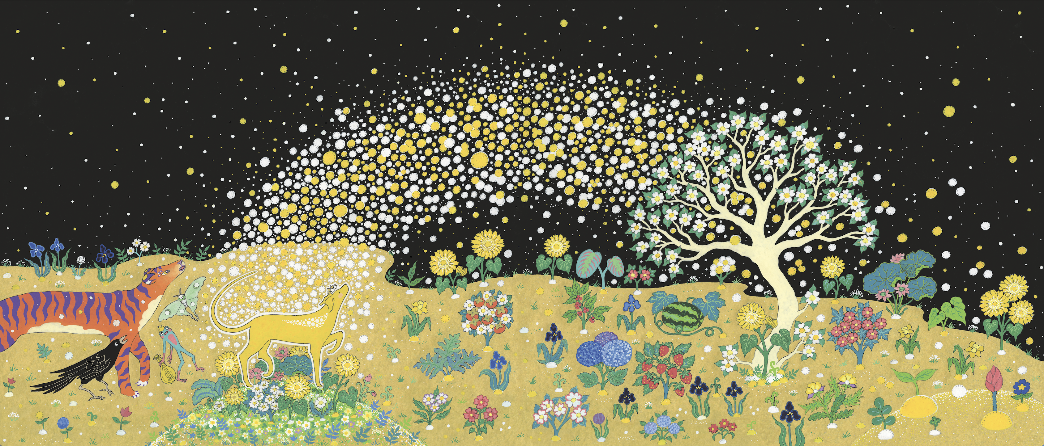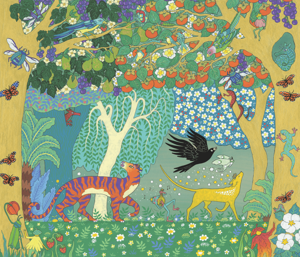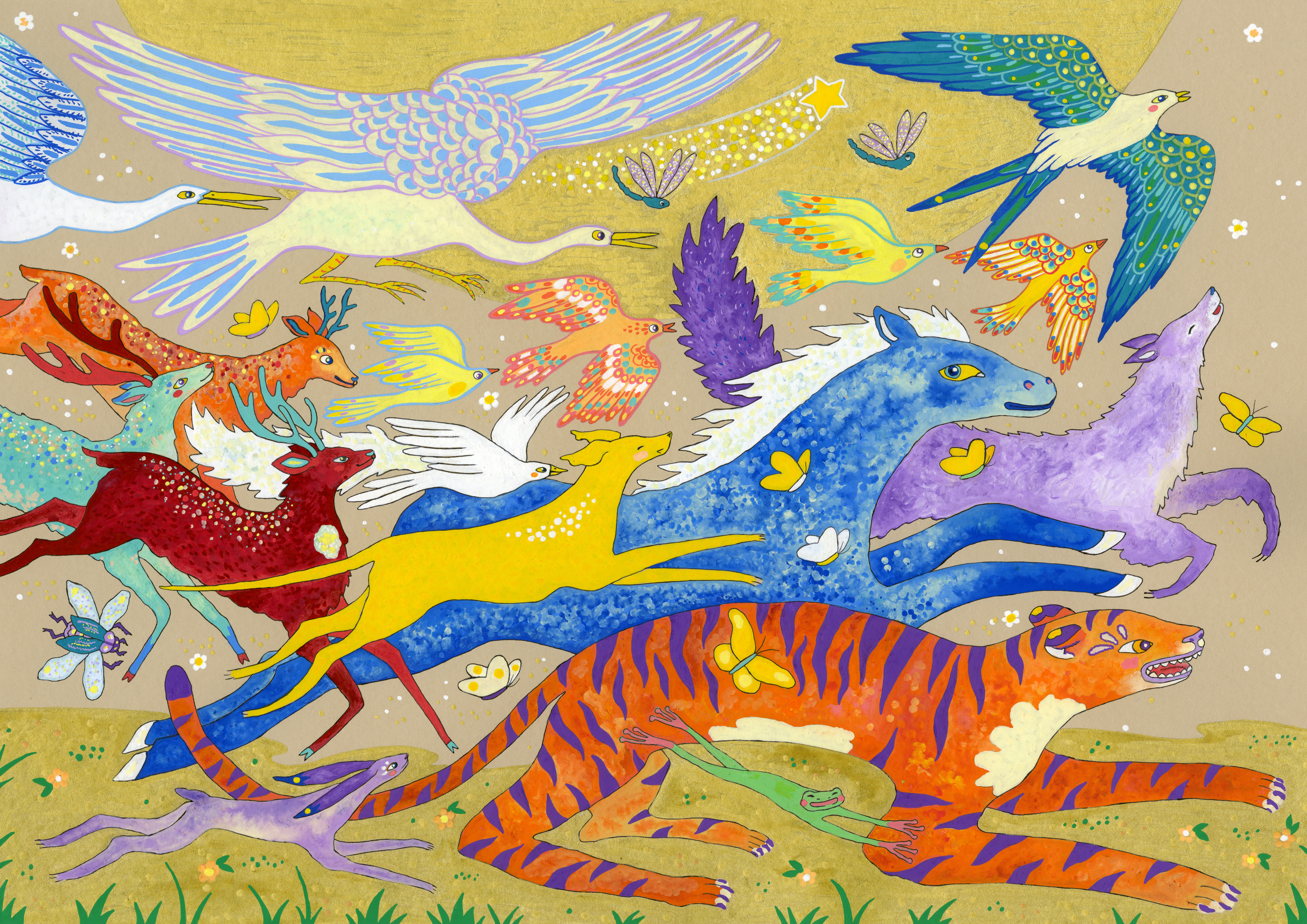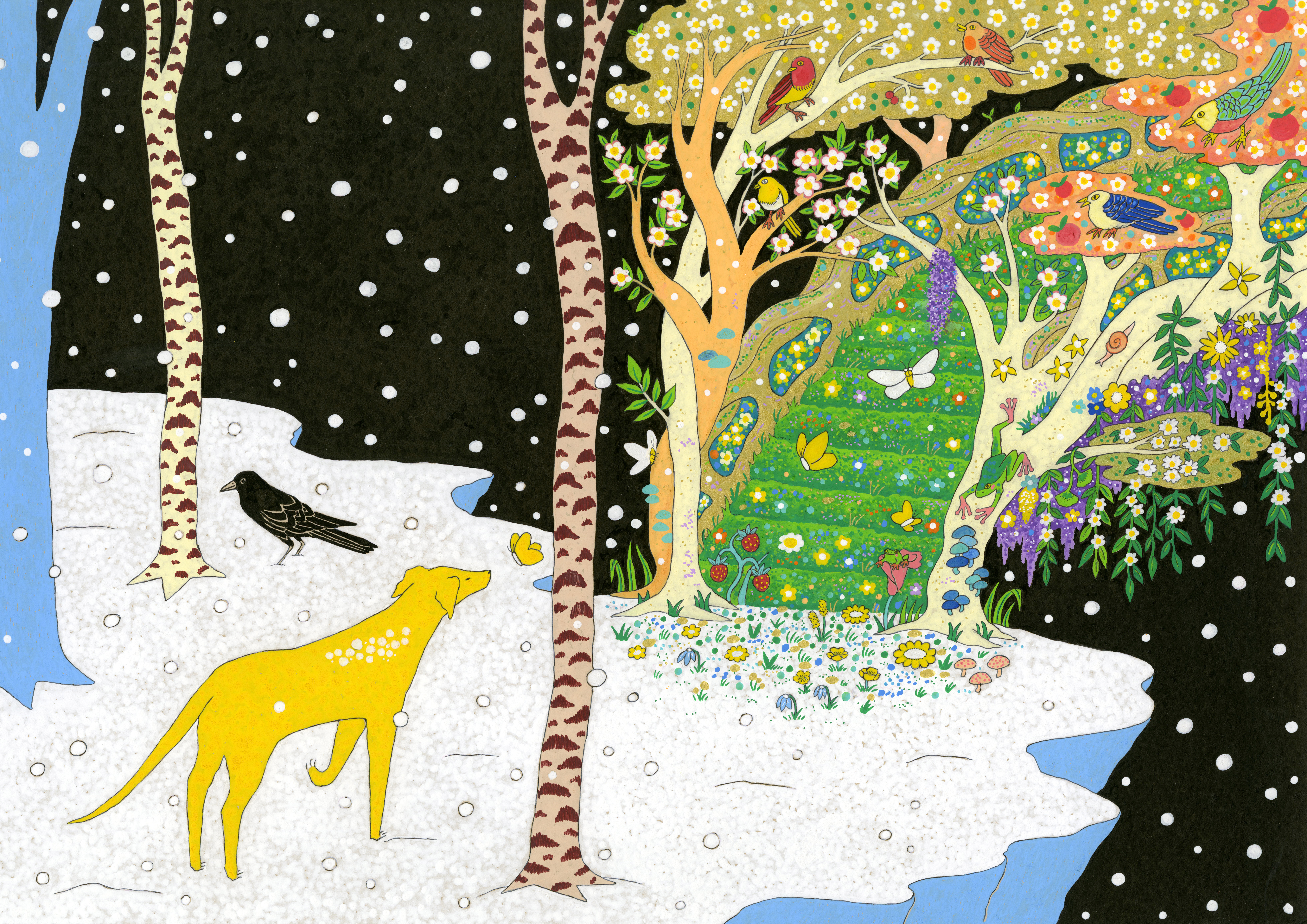 ‘Stardog, Frog, Crow, Moth and Tiger stepped into the tunnel. They gazed up at its beautiful boughs, and followed its mysterious long path…